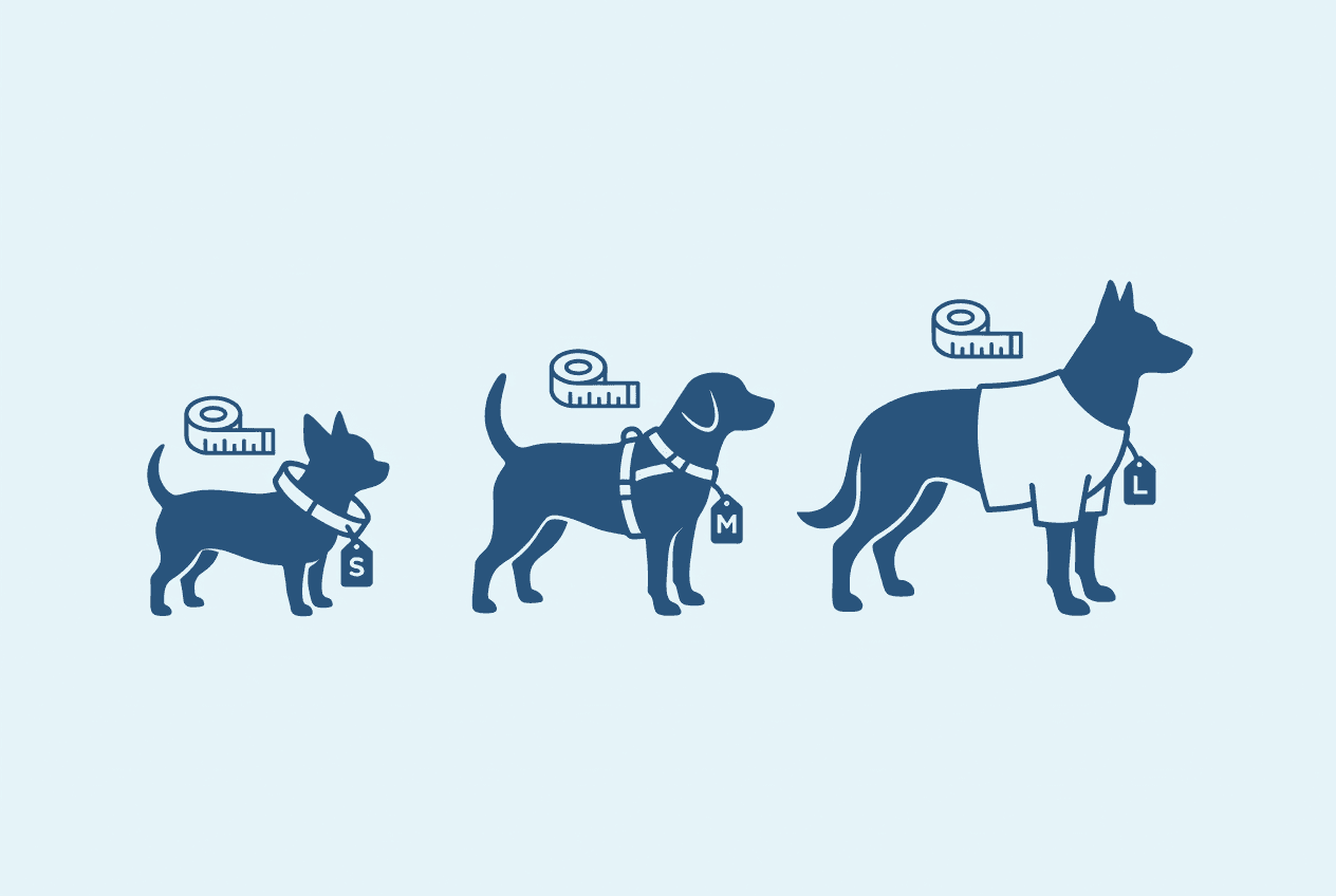 宠物体型并不能用 S / M / L 简单定义,不同犬种的体型结构差异巨大。Pet sizes don’t follow S, M, L. Different breeds have completely different body shapes.